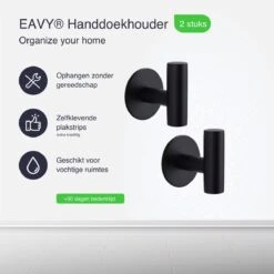 EAVY 2 Stuks Zelfklevende Handdoekhaakjes – Handdoekhouders – Plakhaakjes – Zwart