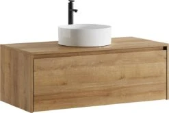 Badmeubelset Alba 60cm Zwart Met Eiken Compleet Badkamermeubel