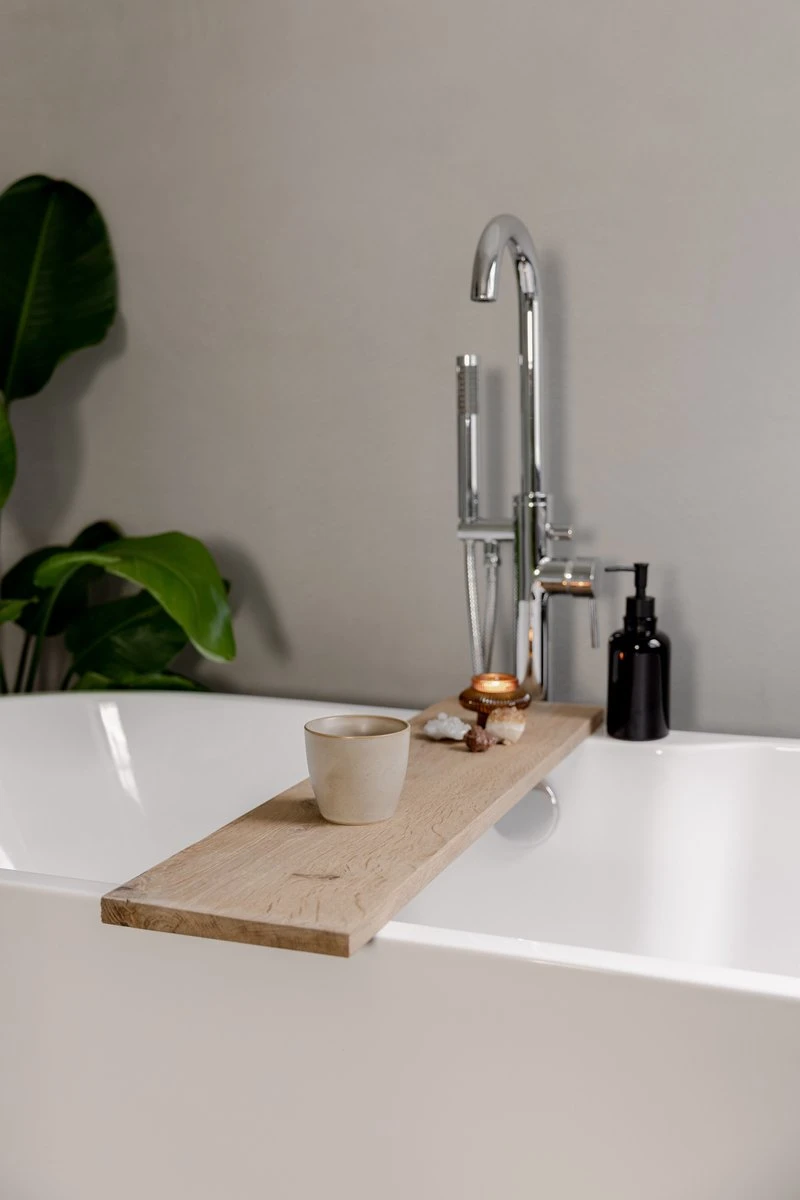 Onze luxe badplank past perfect in een moderne badkamer. De plank is vervaardigd uit massief eikenhout en geeft nog meer warmte in de badkamer.