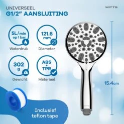 WITTS Douchekop – Waterbesparend – Hoge Kwaliteit – Handdouche ø 12cm – 6 Standen – Zwart