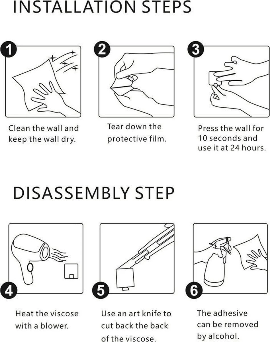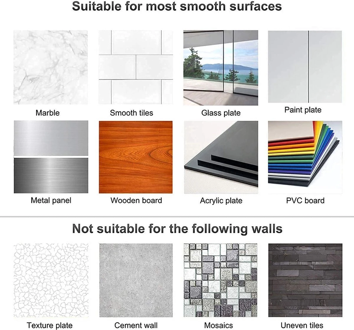 【WIJDE TOEPASSING】U kunt ze plakken op een gladde harde ondergrond, zoals keramische tegels, koelkast deur, garderobe, marmer, houten tegels, keramiek, spiegel, roestvrij staal, acryl, kunststof, laminaat en nog veel meer, LIME MUUR, geschilderde muur, droge muur en wandbekleding met texturen zijn niet aan te raden, of het zal eraf vallen of beschadigen uw muur.