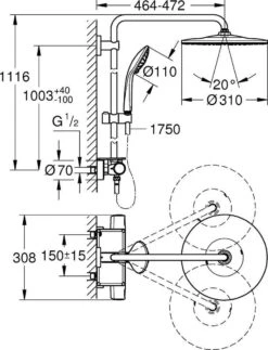 GROHE QuickFix Vitalio Start 250 Regendouche – □ 25 Cm – Vierkant – Met Thermostaatkraan – Chroom