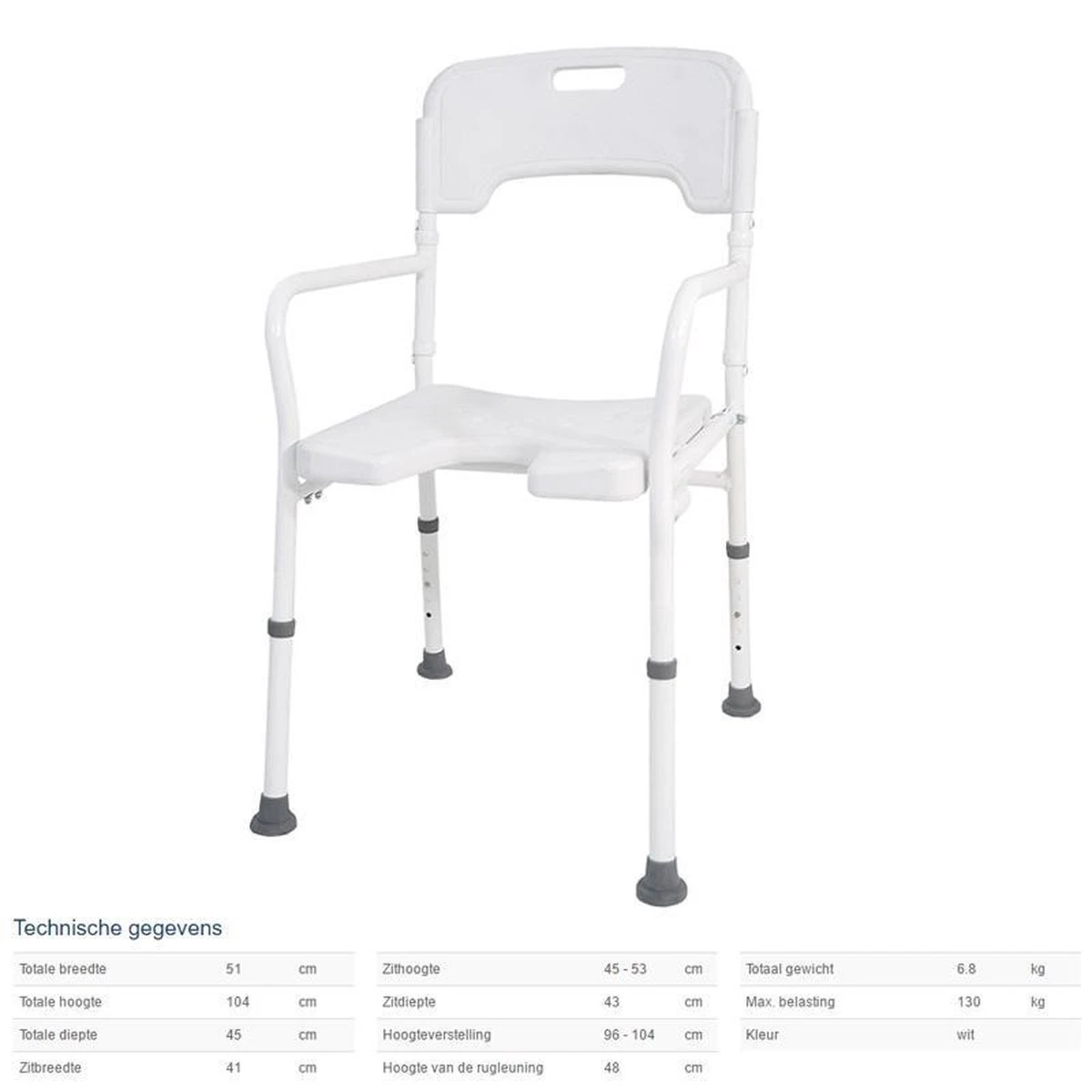 De douchestoel is gemakkelijk opvouwbaar waarbij de zitting naar beneden kan worden geklapt en de douchestoel vervolgens gemakkelijk naar binnen kan worden gevouwen.