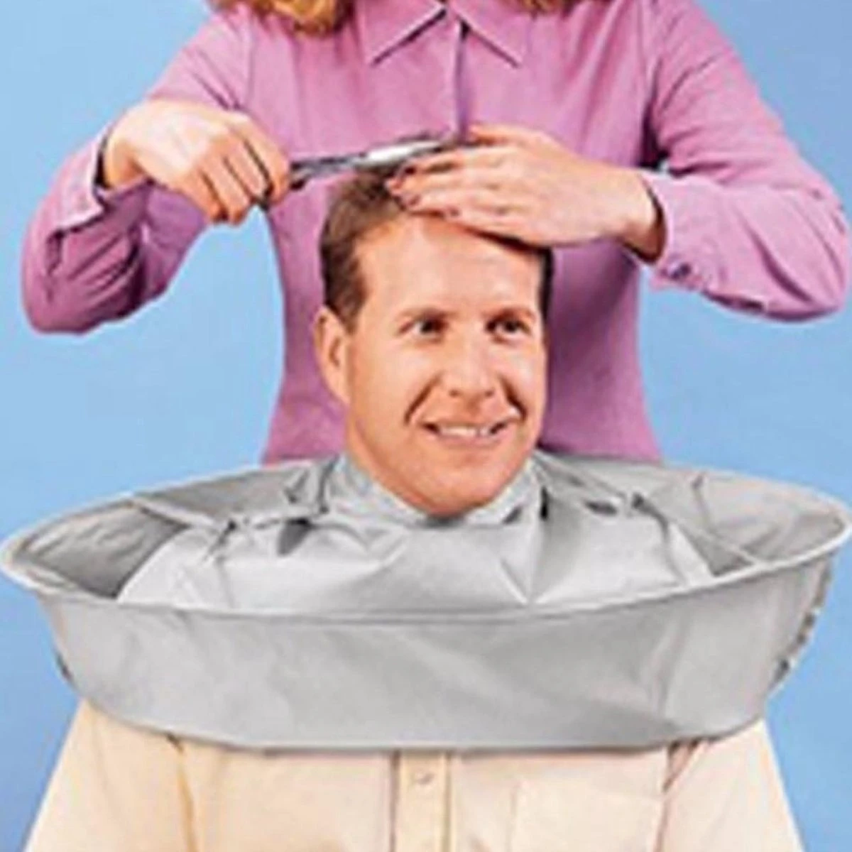 Deze handige kapmantel vangt het haar dat je afknipt op, zodat je je geen zorgen hoeft te maken over je vloer!