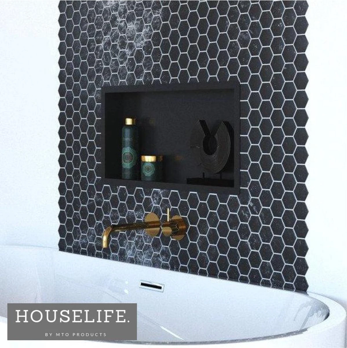 De inbouwnis zwart van HouseLife is de eyecatcher van je douchehoek. Met de slimme afmeting van 60 cm lang, 30 cm hoog en 7 cm diep kan je bijna al je douche attributen kwijt. Gemaakt van roestvrij staal en gecoat in mat zwart met slijtbestendige laag is de inbouwnis badkamer gemaakt dat hij langer mee kan!