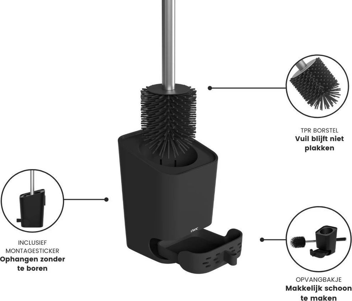 - Inhoud verpakking: toiletborstel met houder en bevestigingssticker.