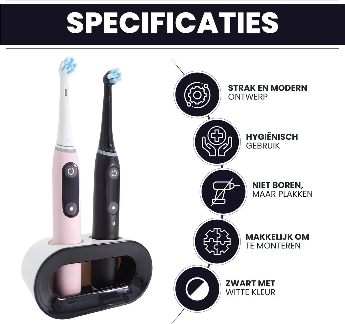 De tandenborstelhouder is geschikt voor twee elektrische tandenborstels. Door de siliconen ringen aan de bovenzijde zitten de tandenborstels goed vast. Zo kun je bijvoorbeeld je Oral-B tandenborstel makkelijk vast zetten. De siliconen ringen zorgen er ook voor dat er geen viezigheid achterblijft in de tandenborstelhouder.