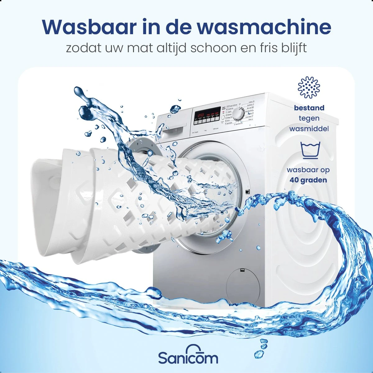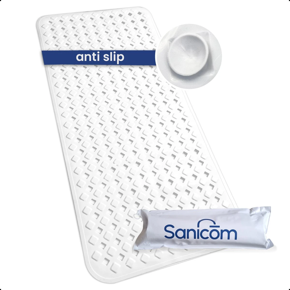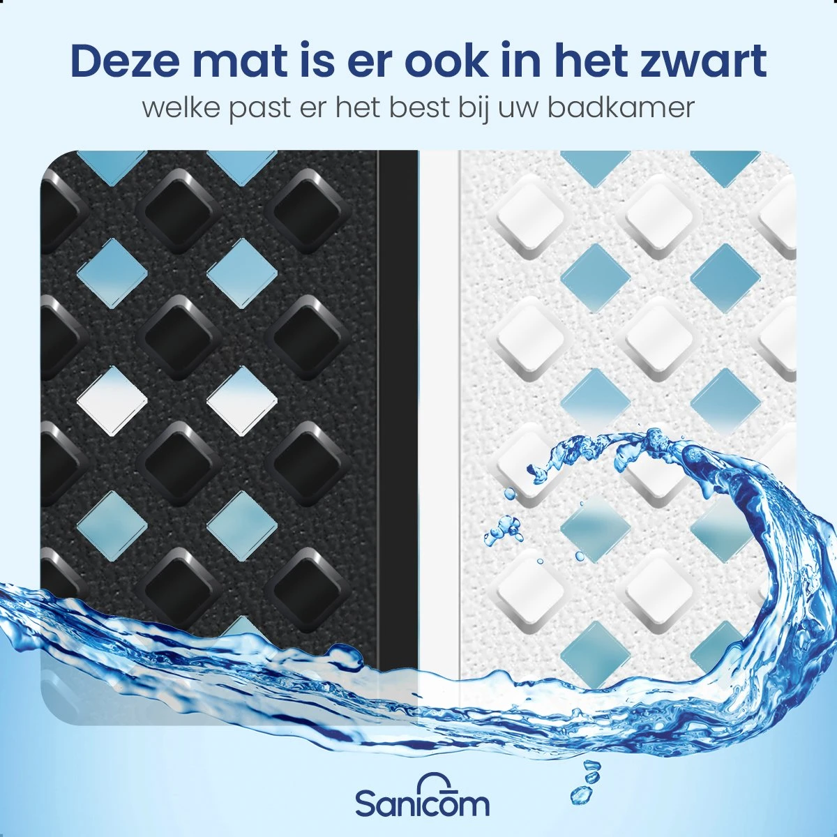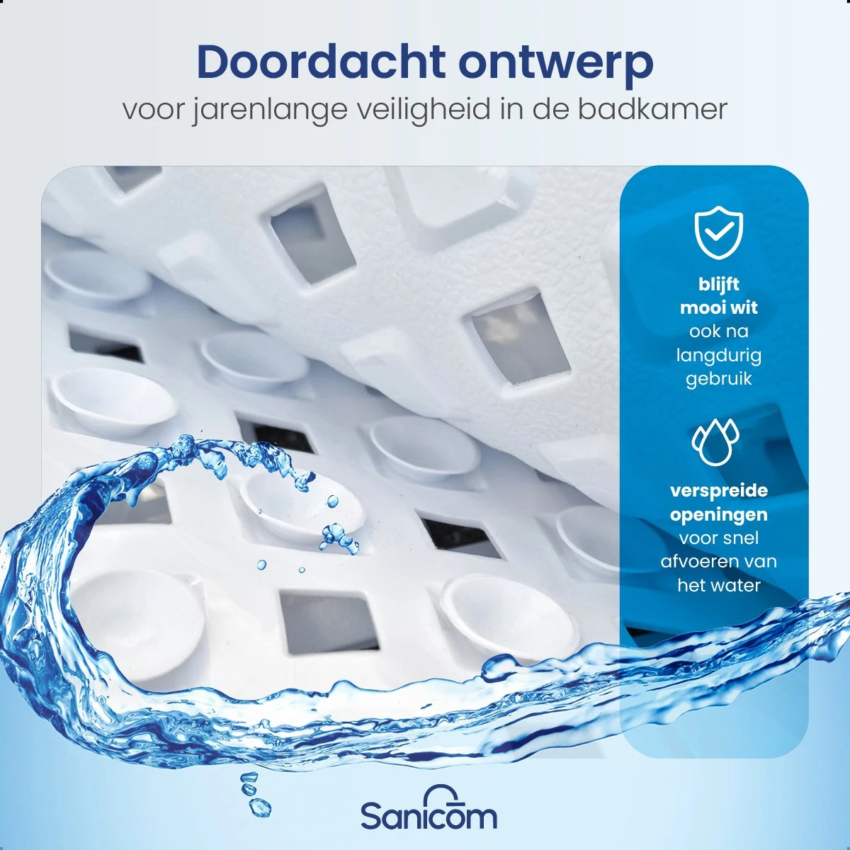 Een stevige antislipmat zorgt ervoor dat jouw badkamer en douche weer een veilige plek worden. De antislip douche- en badmatten van Sanicom beschikken over veel en sterke zuignappen zodat de mat extra grip heeft. Daarnaast kan door het slimme ontwerp gemakkelijk al het water weglopen, zo voorkom je extra vochtigheid en schimmelvorming. Zo blijft jouw badkamer veilig en schoon.