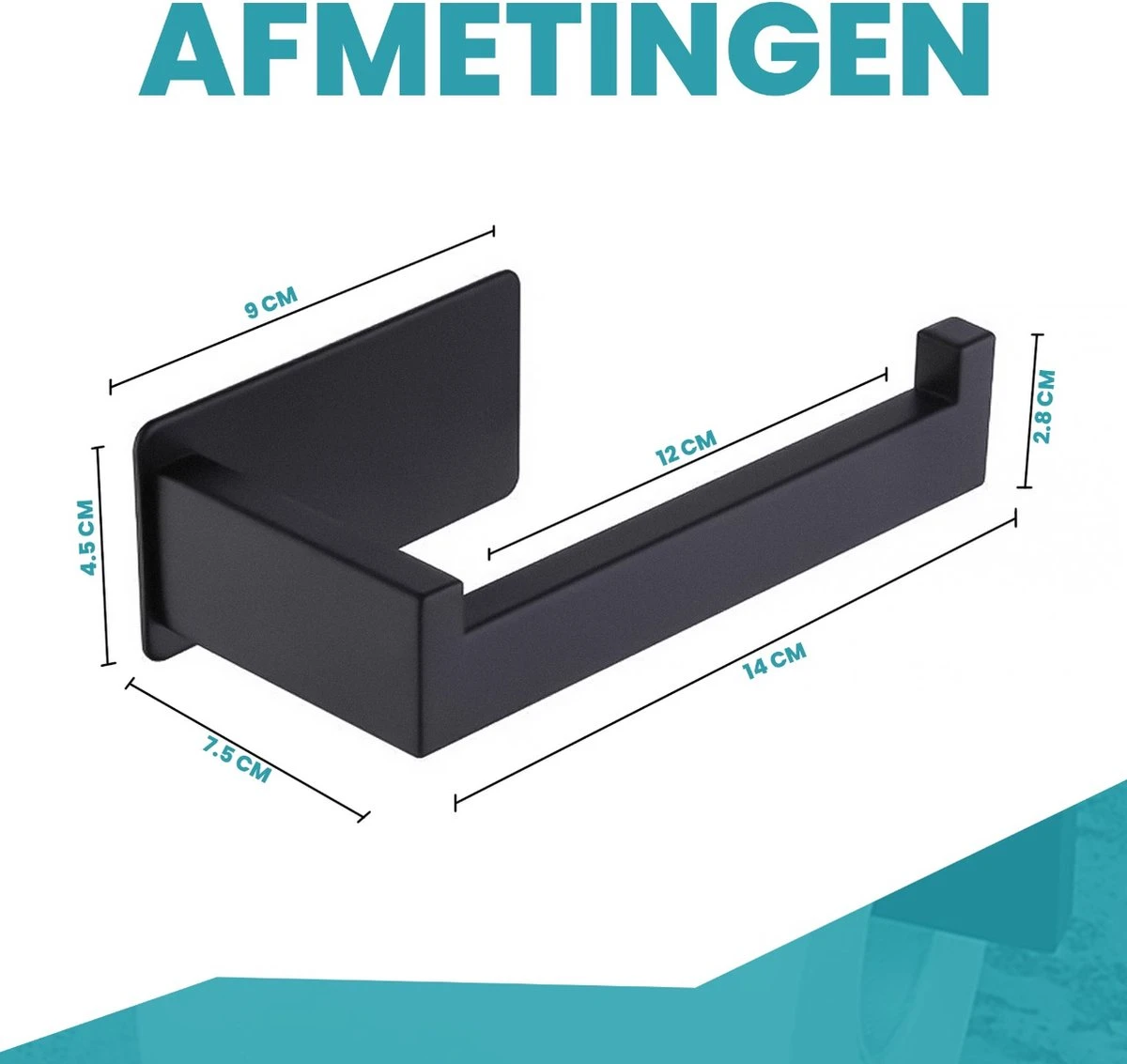 Geen ongewenste gaten en beschadigingen meer aan de muur met deze zelfklevende toiletrolhouder! De houder is uitgerust met een matzwarte afwerking voor een stijlvolle, moderne look en past daarom makkelijk in ieder interieur. Dankzij het zelfklevende systeem is de toiletrolhouder eenvoudig te monteren in minder dan één minuut. Bijgevoegd krijg je een gratis haak met een matzwarte finish om het interieur van je toilet of badkamer compleet te maken. Krijg dus meer waarde uit je geld!