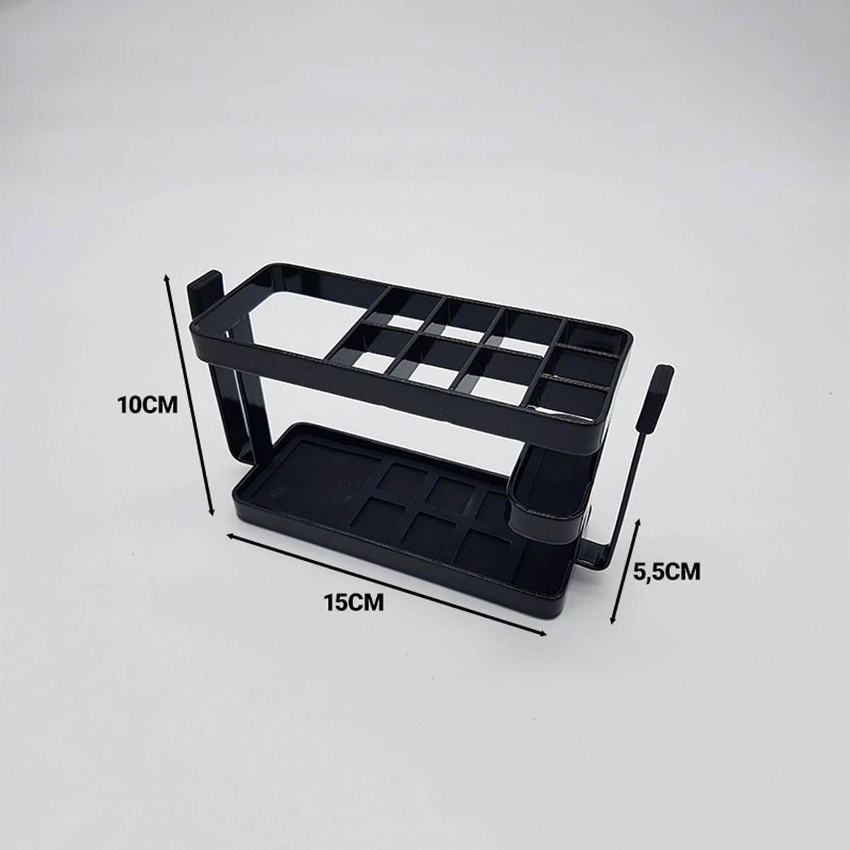Het leuke design zorgt ervoor dat je deze badkamer organizer niet alleen kunt gebruiken in de badkamer maar ook op je bureau of kantoor voor onder anderen pennen, scharen, etc. De creativiteit laten we aan jou over.