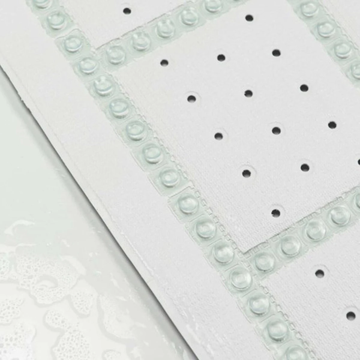 Met de Sealskin Unilux antislipmat zorg je voor extra veiligheid in jouw badkamer. Deze vierkante antislipmat is aan de onderzijde uitgerust met zuignappen zodat je deze stevig kunt bevestigen in je douche om uitglijden te voorkomen. Het water kan gemakkelijk weglopen door de gaatjes in de mat. De antislipmat is uitgevoerd in de kleur wit en dankzij zijn formaat van 55×55 cm is hij uitermate geschikt voor in je douchecabine. De mat kan eenvoudig met de hand gereinigd worden maar mag zelfs op een 30 graden fijnwasprogramma in je wasmachine.