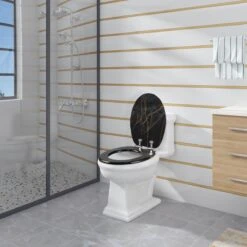 Plieger Classic Toiletbril – Wc Bril Zwart Gelakt MDF – Wc Brillen Met Deksel – Met Bevestigingsset