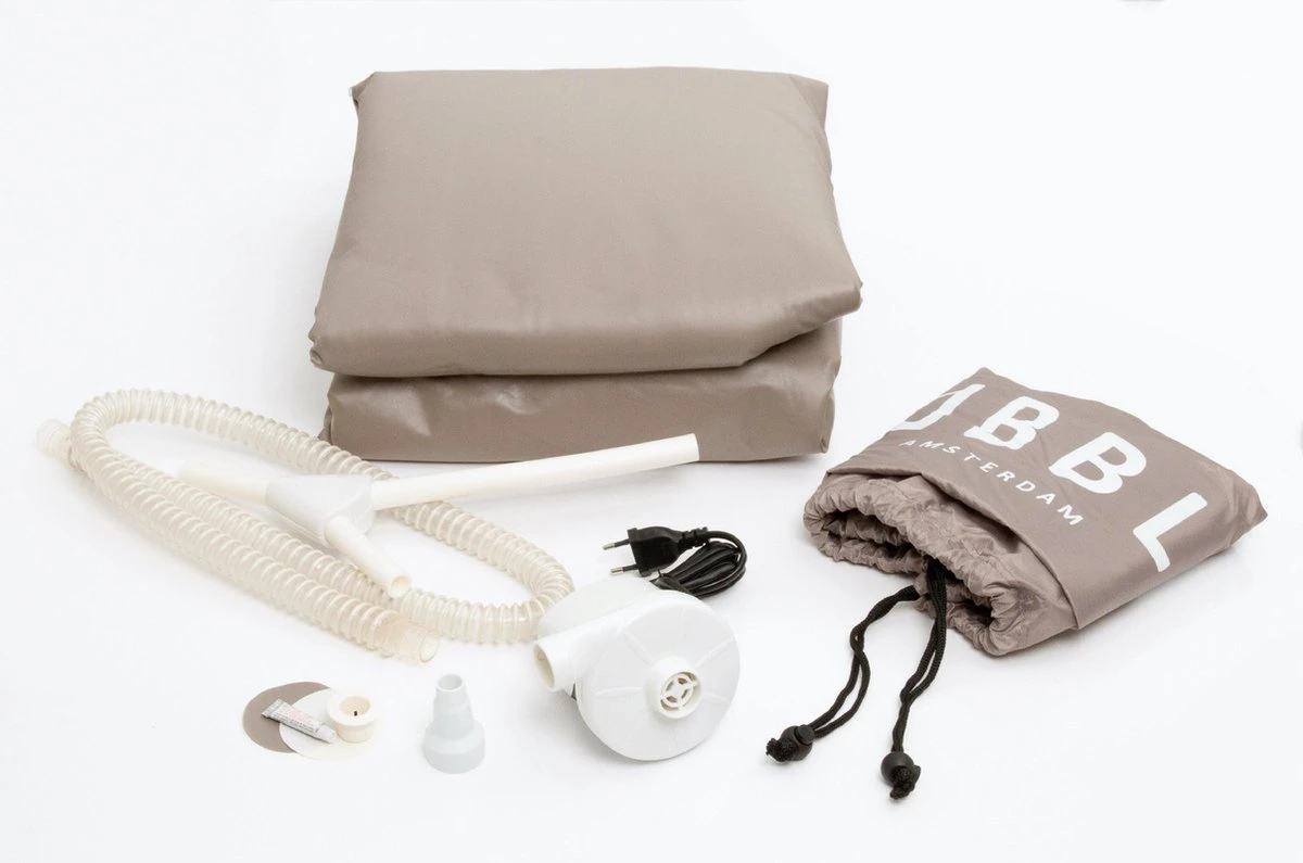 Het originele air bath. In prachte taupe kleur en met de gratis Auto-inflator. Gepatenteerd ontwerp uit Amsterdam.