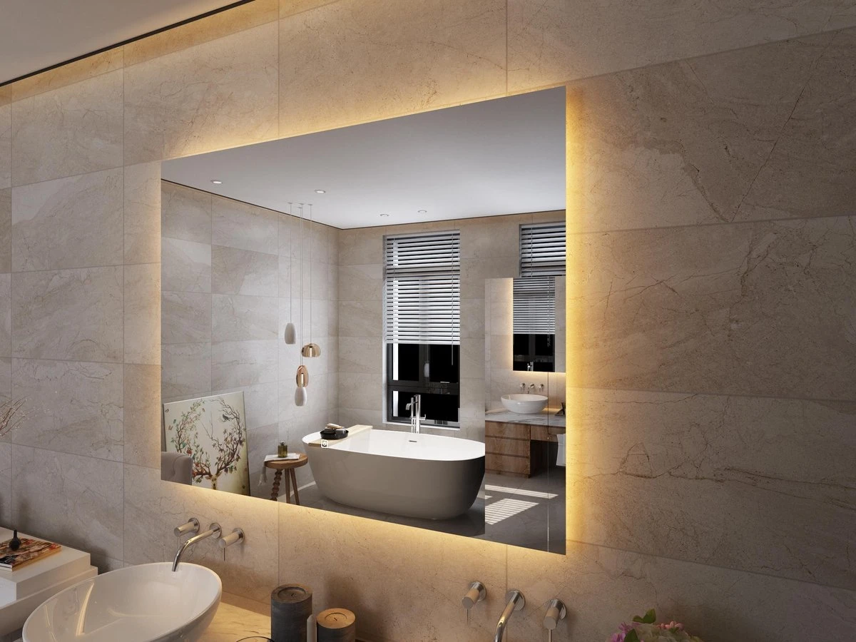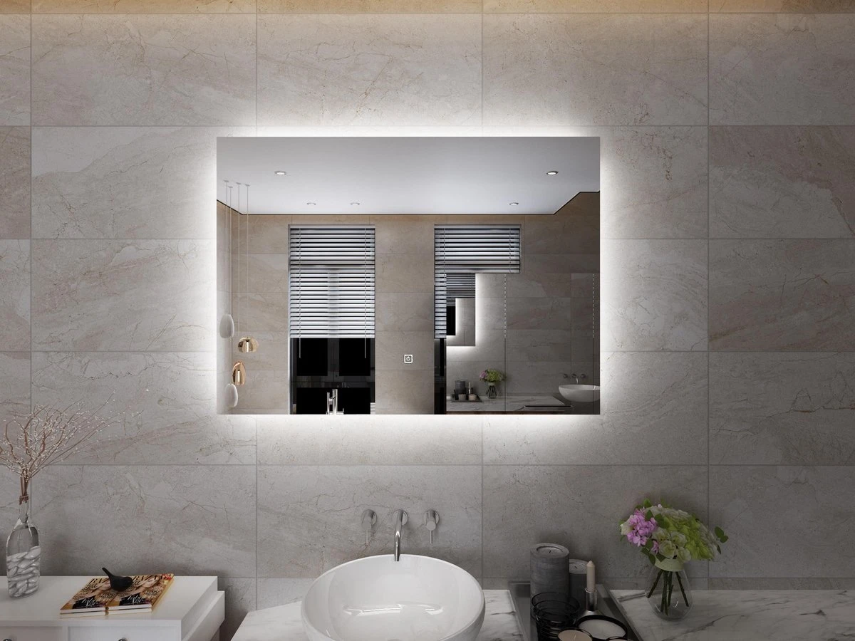 De LED verlichting is achter de spiegel geplaatst wat een zeer fraai lichteffect geeft, de spiegel geeft uw nieuwe of gerenoveerde badkamer een 5 sterren hotelkamer uitstraling. De LED verlichting heeft drie standen 2700, 4000 en 6000K zodat u kunt kiezen voor sfeervolle, neutrale of praktische verlichting. Daarnaast kunt u deze verlichting ook dimmen.