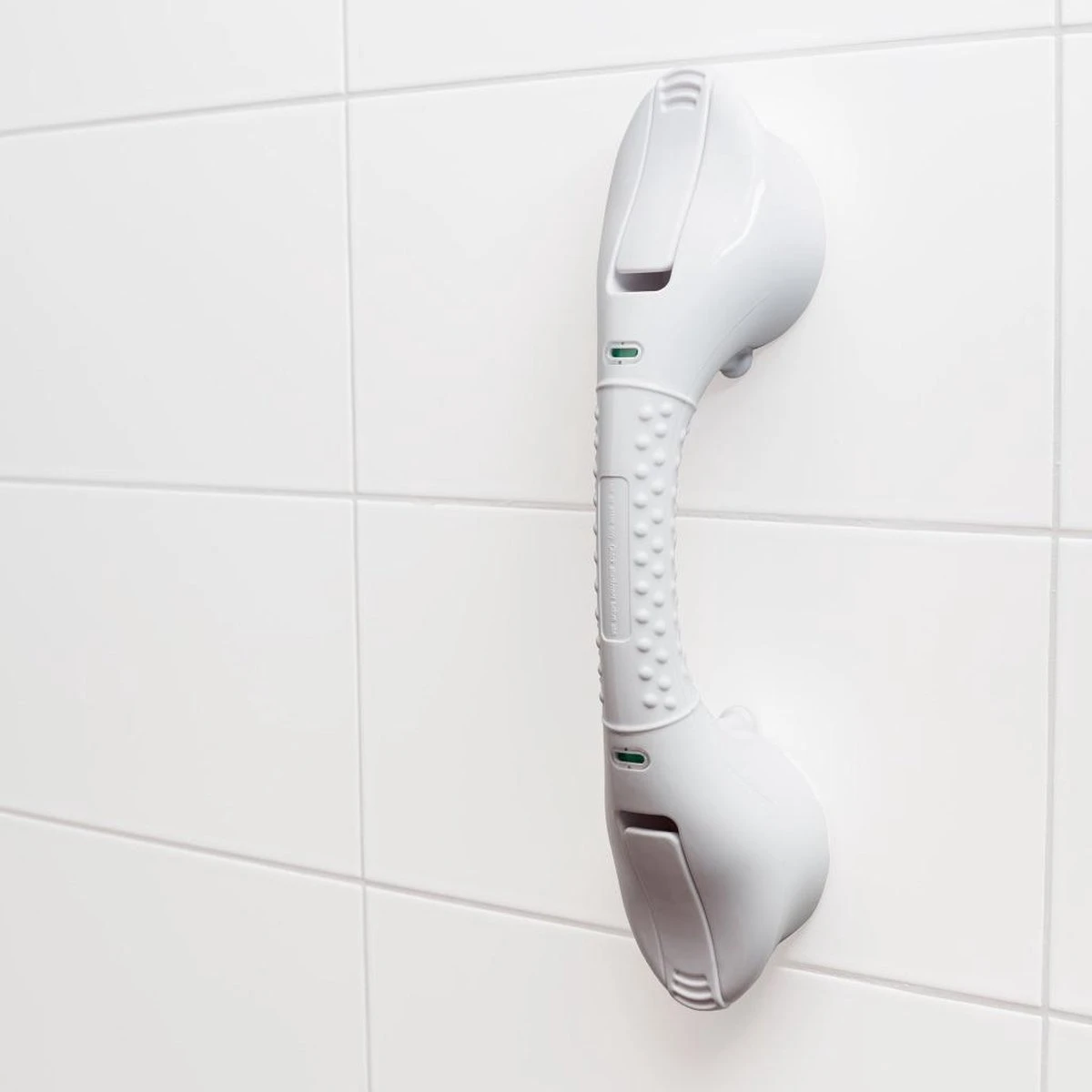 De Quick Mobile Rail is ontworpen om te ondersteunen bij een natuurlijke beweging, bijvoorbeeld als men in en uit de douche stapt. De Quick Mobile Rail is niet ontworpen om het hele lichaamsgewicht te dragen. De mobiele wandbeugel is in enkele seconden, zonder te boren of te schroeven, aan te brengen en te verwijderen. De twee krachtige zuignappen worden stevig op een gladde, niet poreuze en stevige oppervlakte gedrukt, de vacuümhendels worden naar beneden gedrukt en de Quick Mobile Rail zit vast. Als de indicator op groen staat is de beugel goed bevestigd. Indien de indicator half groen / half rood of geheel rood is, geeft dit aan dat de beugel niet goed vast zit. De beugel dient opnieuw te worden bevestigd.