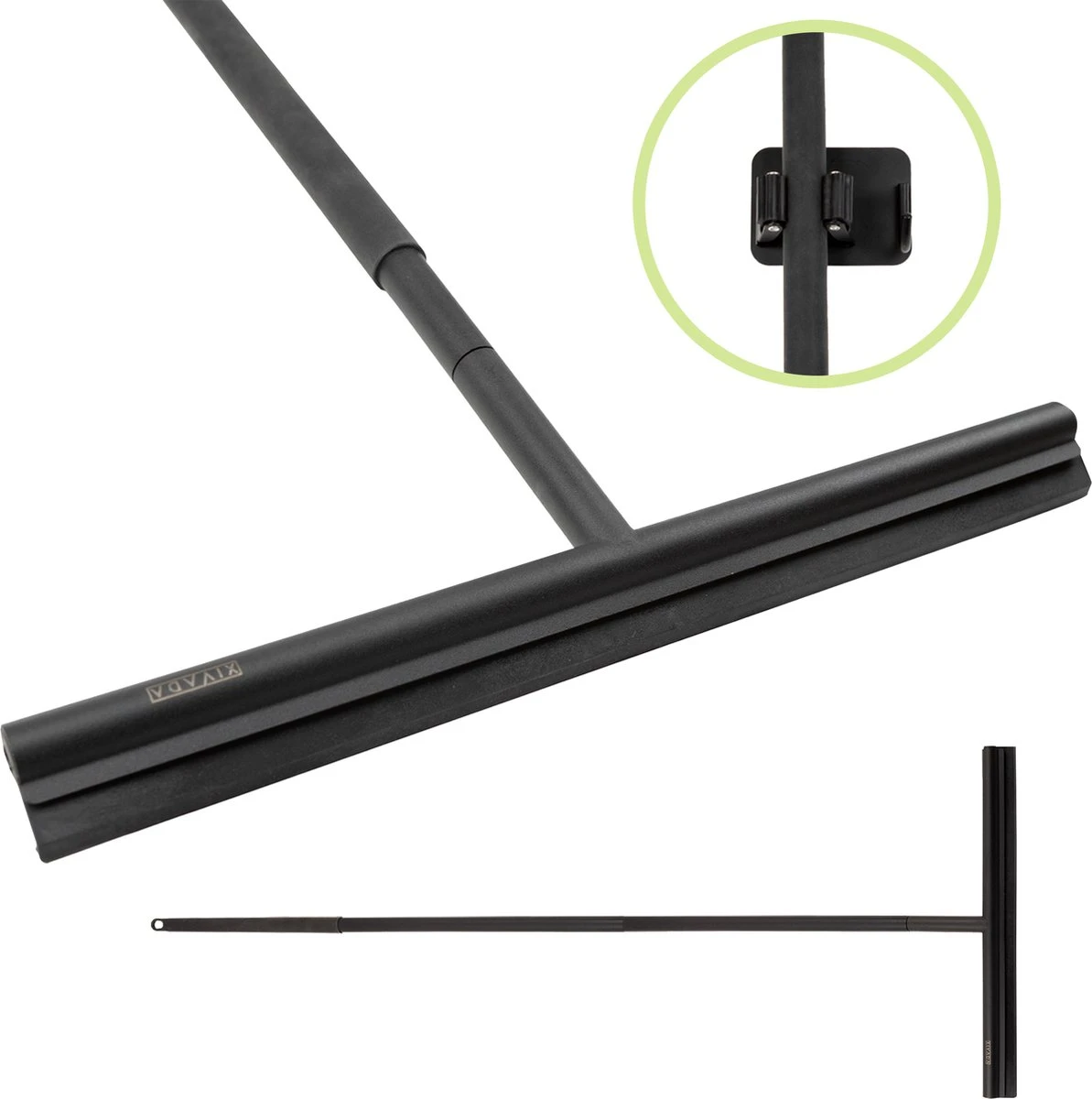 De douchetrekker bestaat uit 4 onderdelen die je zo in elkaar schroeft. Zet vervolgens de wisser tegen de muur of hang ‘m op met de meegeleverde ophanghaak.