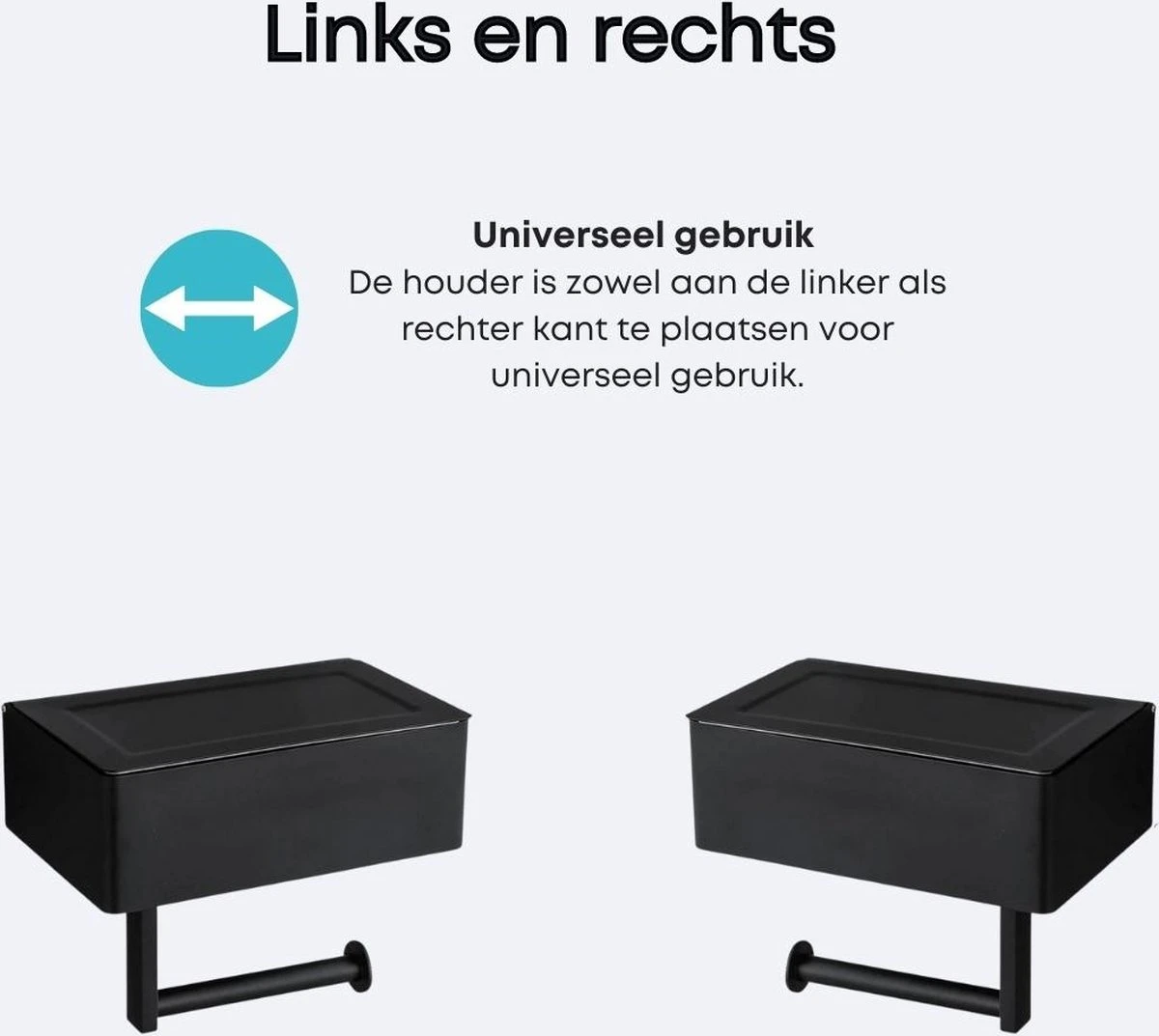 De toiletrolhouder is zowel links als rechts te plaatsen.