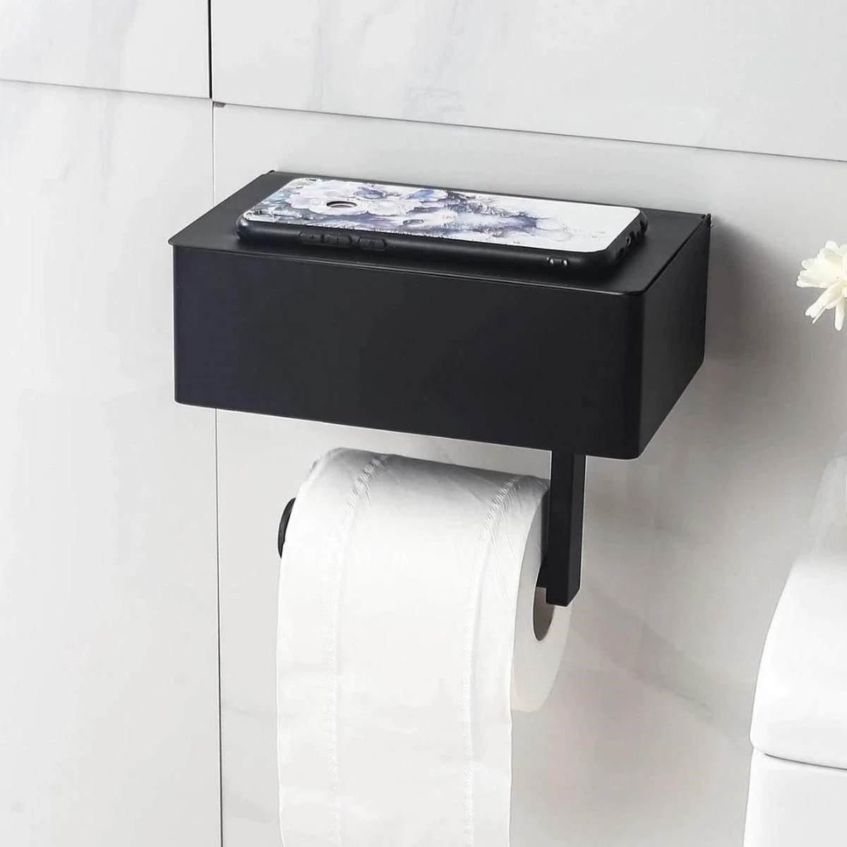 Met deze toiletrolhouder zijn alle noodzakelijke accessoires altijd binnen handbereik. Tevens kunt u uw telefoon kwijt op het plankje. Gemakkelijk bevestigd zonder te boren!
