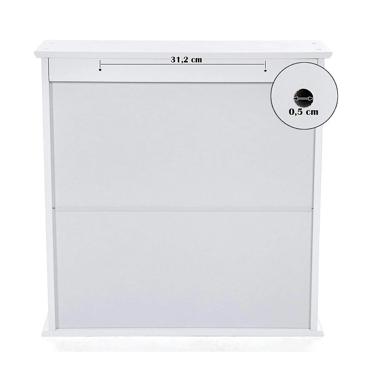 Dit mooie medicijnkastje heeft 2 deuren met 2 rechthoekige spiegels en is gemakkelijk afsluitbaar door de magnetische sluiting. Alle planken zijn aan beide zijden geverfd op een glad en egale wijze. Het oppervlak van de planken van dit medicijn kastje is ook waterafstotend. De binnenste plank is in drie hoogtes verstelbaar. Het is bovendien gemakkelijk en snel te monteren, en er zijn zelfs extra schroeven voorzien.