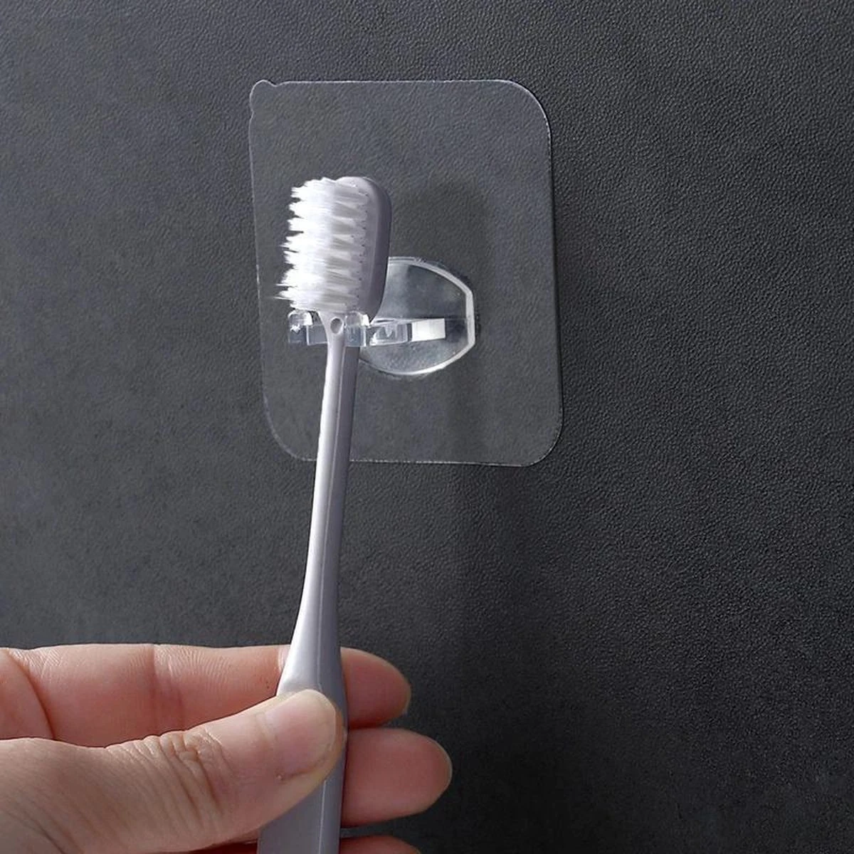 Zitten bij jullie ook alle tandenborstels in hetzelfde bakje? Lekker tegen elkaar is niet zo hygienisch helaas. Plak daarom deze transparante tandenborstel houder aan de muur, je hangt je tandenborstel eenvoudig en hygienisch op zonder dat ze elkaar aanraken.